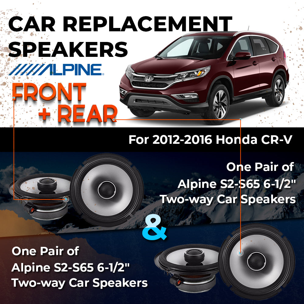 CAR REPLACEMENT SPEAKER PACKAGE FOR 2012-2016 for Honda CR-V VEHICLES THIS PACKAGE INCLUDES THE FOLLOWING: Alpine S2-S65...