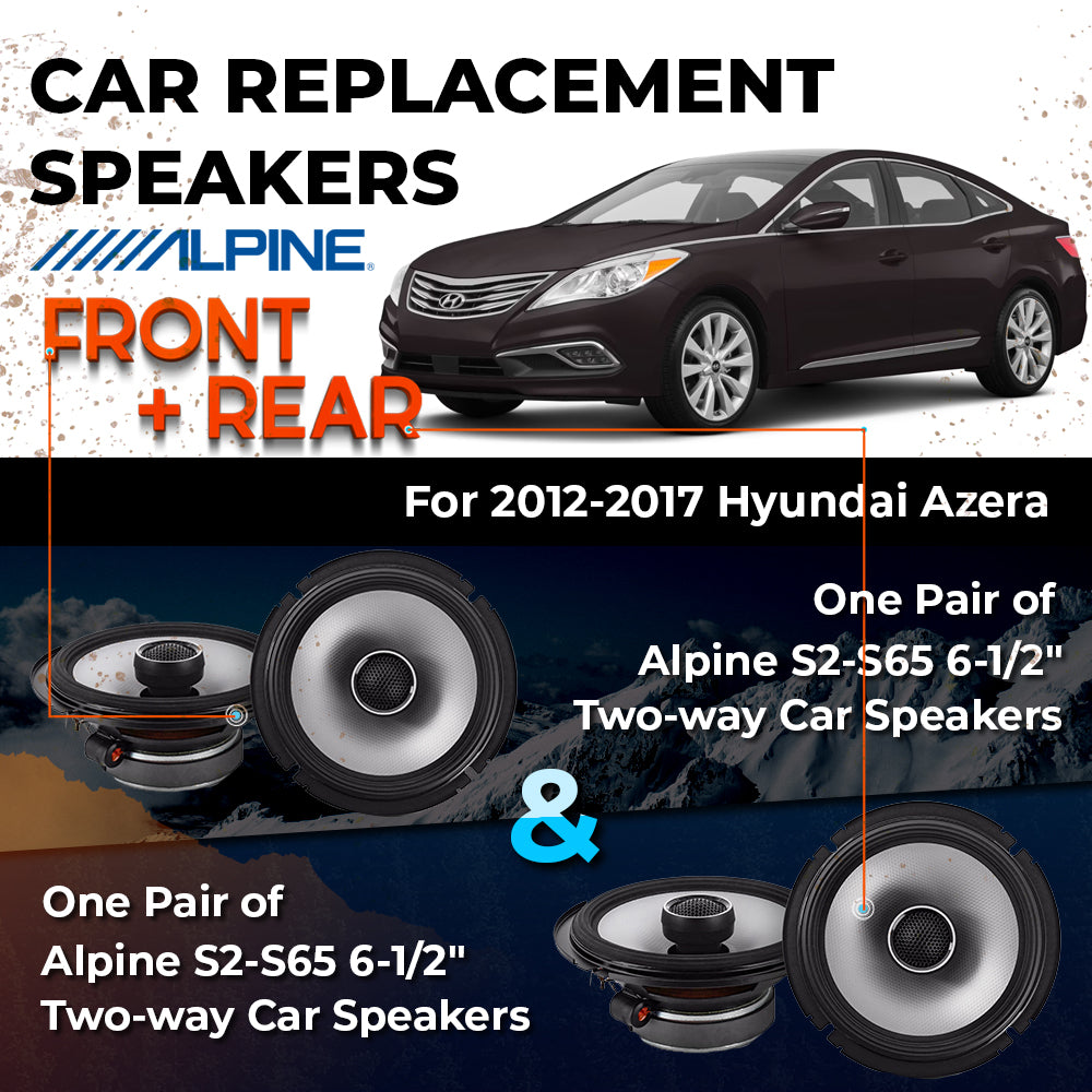 CAR REPLACEMENT SPEAKER PACKAGE FOR 2012-2017 for Hyundai Azera VEHICLES THIS PACKAGE INCLUDES THE FOLLOWING: Alpine S2-S65...