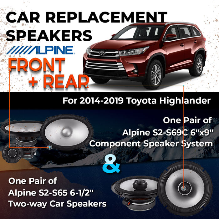 CAR REPLACEMENT SPEAKER PACKAGE FOR 2014-2019 for Toyota Highlander VEHICLES THIS PACKAGE INCLUDES THE FOLLOWING: Alpine S2-S69C...