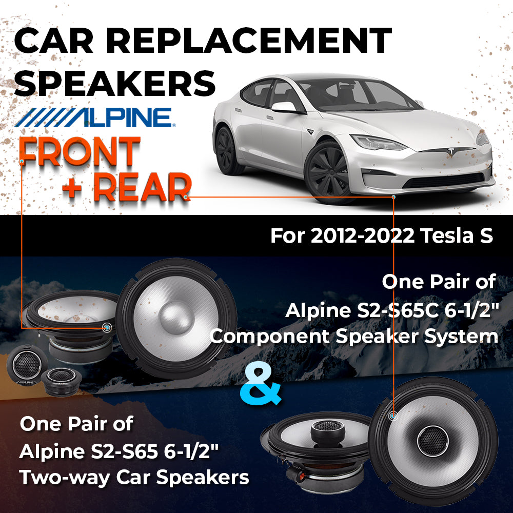 CAR REPLACEMENT SPEAKER PACKAGE FOR 2012-2022 for Tesla S VEHICLES THIS PACKAGE INCLUDES THE FOLLOWING: Alpine S2-S65C...