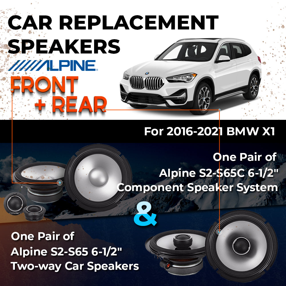 CAR REPLACEMENT SPEAKER PACKAGE FOR 2016-2021 for BMW X1 VEHICLES THIS PACKAGE INCLUDES THE FOLLOWING: Alpine S2-S65C...