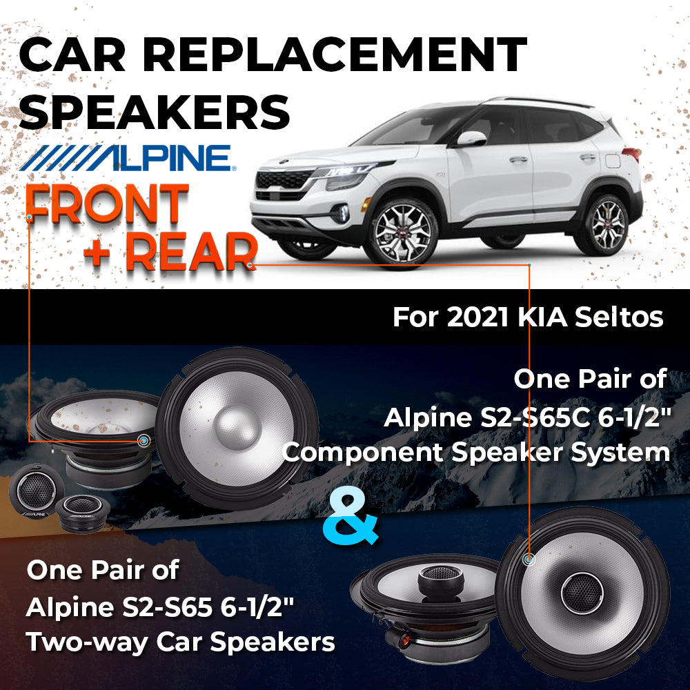 CAR REPLACEMENT SPEAKER PACKAGE FOR 2021 for kIA Seltos VEHICLES THIS PACKAGE INCLUDES THE FOLLOWING: Alpine S2-S65C...