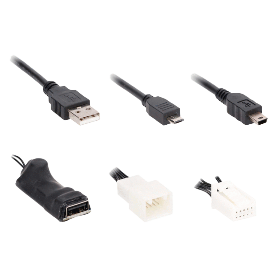 This plug-n-play rearview mirror T-harness makes connecting a vehicle safety and security camera easy without cutting your vehicles factory wiring. This T-harness includes a 2-amp, 5-volt USB, which accommodates both USB "A" to Mini "A" and USB "A" to Micro "B" connections. Also included are 6" extension cables for easy installation.