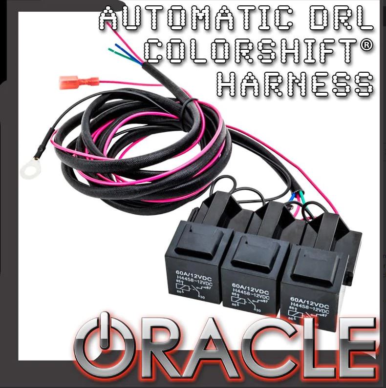 Turn your ORACLE ColorSHIFT Halos into White Daytime Running Lights with this new Wiring Harness from ORACLE Lighting. Connect the harness to your ColorSHIFT controller and the trigger wire to your parking lights or factory DRL. Then whenever you drive your car the lights will be white for legal on-road use then when you park the Halos change back to the color or pattern that you were using last.