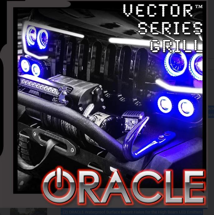 ORACLE Lighting now offers a NEW Surface Mount Design Halo for the ORACLE Vector Jeep Wrangler JK/JL Grill and the Jeep Gladiator JT. These Waterproof Halo rings feature a unique Resin-Injected Polycarbonate lens that protects the ring and makes it impermeable to water and moisture, Making Installation Simple!