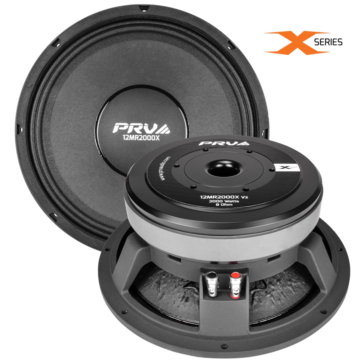 Extreme car audio enthusiasts will find PRV Audios 12MR2000X to be the perfect 12? midrange door speaker. It is capable of handling up to 2000 watts RMS power (with a suggested 150 Hz, 18 dB/octave high pass filter in place tuned with PRV DSP)!