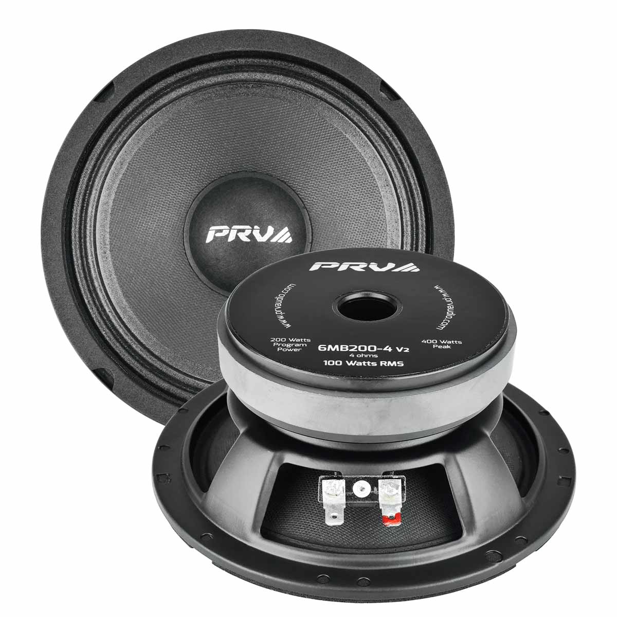 The PRV Pro Audio Loudspeaker, 6MB200-4 v2 midbass woofer, offers outstanding durability and a smooth punch of mid bass for small enclosures. This woofer is perfect for home Hi-Fi installs, including bookshelf, satellite, surround sound speakers and even home studio monitors.