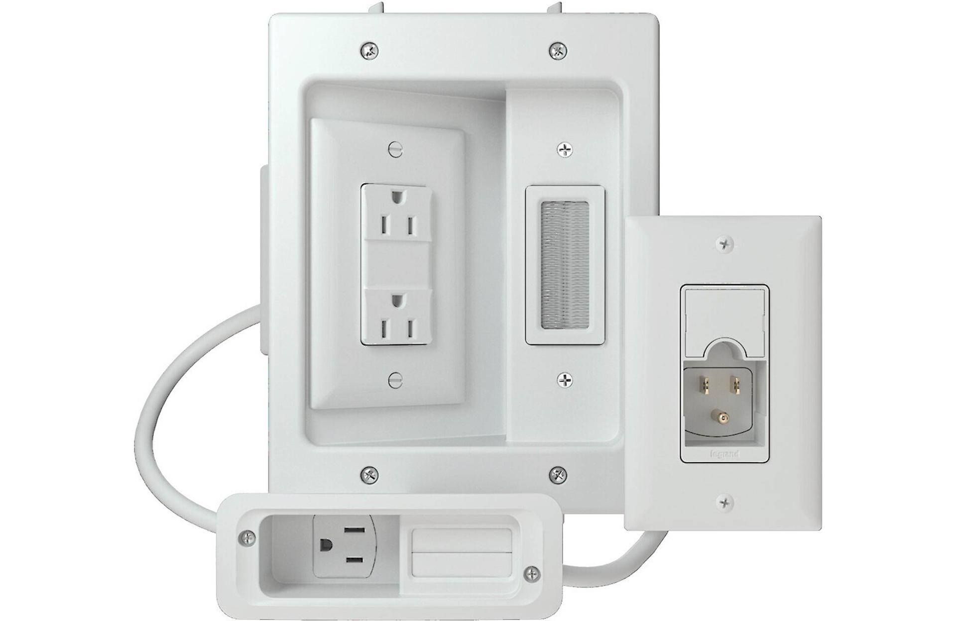 Sometimes the ideal spot on the wall for your TV doesn't have a power outlet behind it. This kit from Sanus helps solve that problem by creating a recessed two-outlet AC receptacle behind your wall-mounted TV.