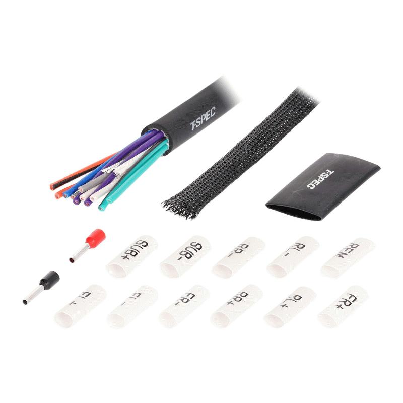 Includes: 20' braided cable, 16-gauge conductors (11), five pairs plus remote, outer jacket heat shrink, heat shrink wire labels, red and black ferrules.