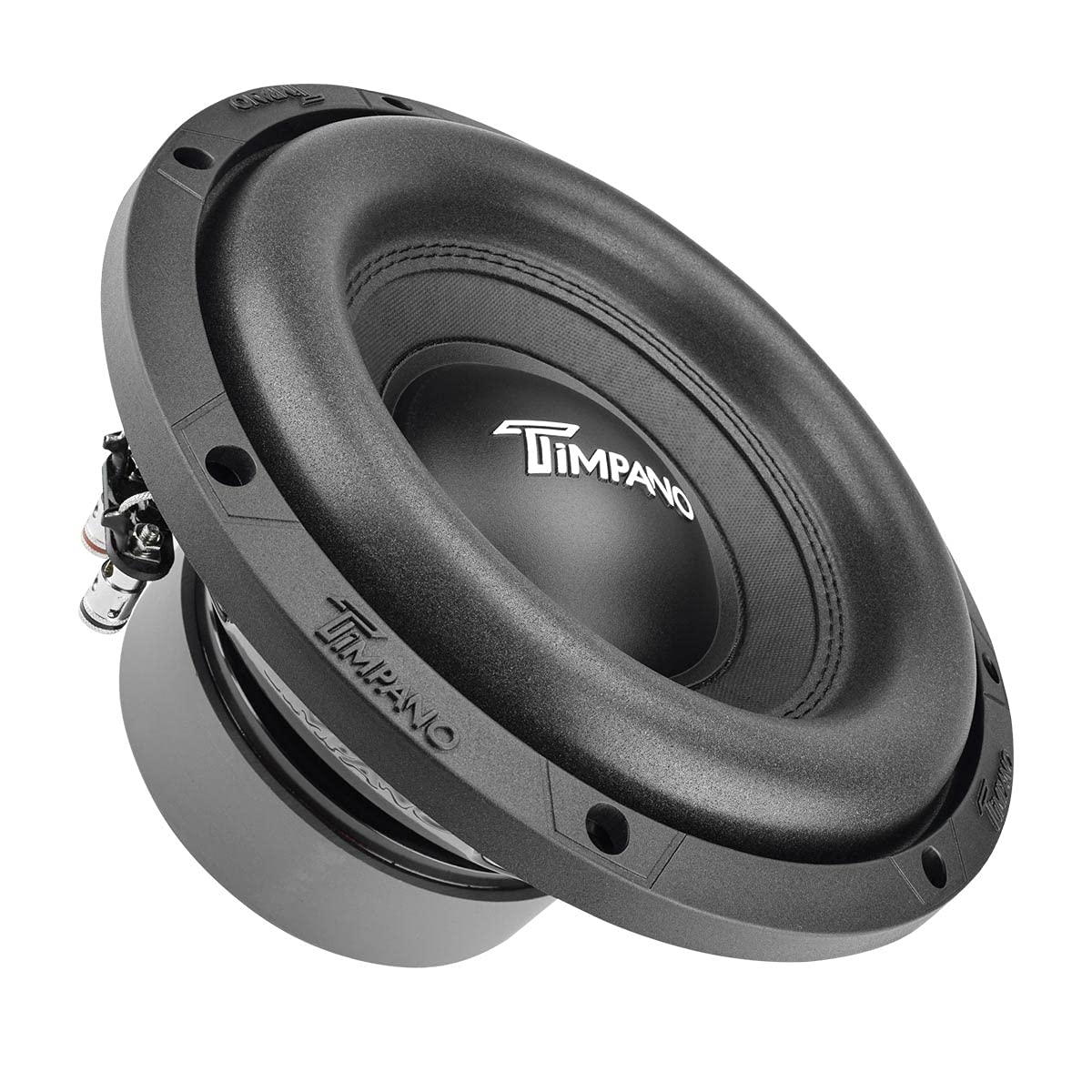 Timpano T1000 is all about deep low tones for small efficient systems. These subs deliver incredible low tones with a small amount of power. This keeps electrical upgrades minimal with less added strain on the vehicle. With high energy, oversized single magnet motor paired with a high foam surround stitched to a heavy-duty competition-grade pressed paper cone, it allows this woofer to play the low notes it was designed for.