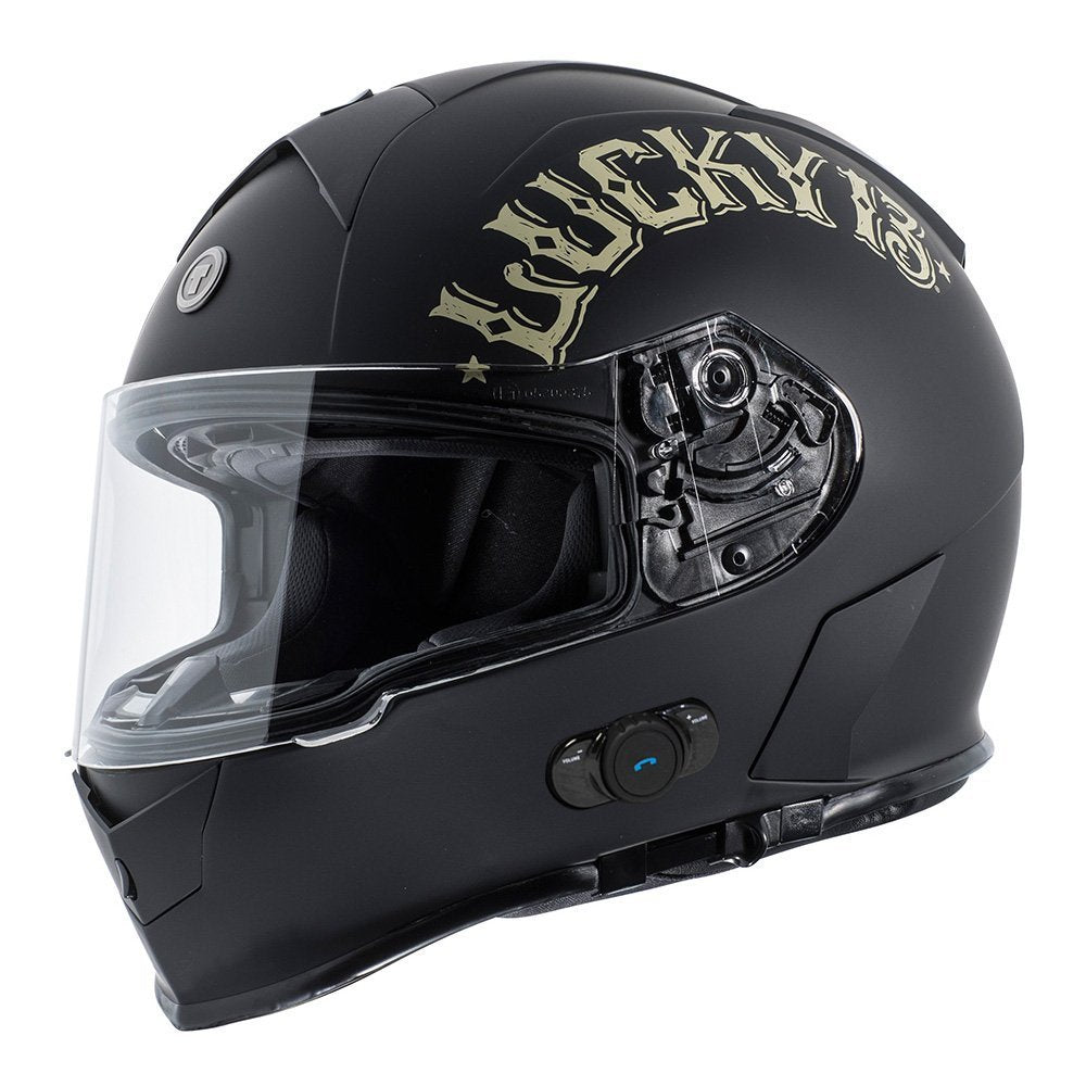 T-14 Bullhead Small Full Face Helmet with Communication System (T14B15BH22) by TORC®. Size: Small. Featuring a dual density EPS system and laser contoured comfort liner padding. It is the only helmet in this price point to use an optically correct flat panel shield. It also uses TORC's new smoothlock drop down internal sun visor system.