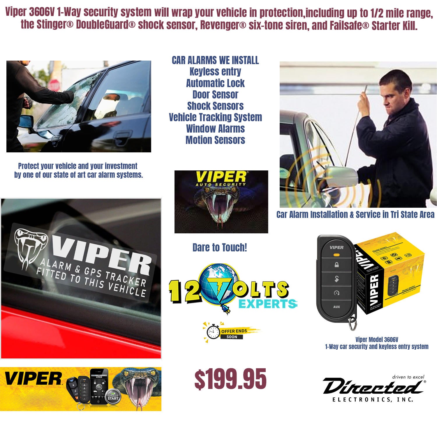 Viper 3606V 1-Way security system will wrap your vehicle in protection,including up to 1/2 mile range,the Stinger® DoubleGuard® shock sensor, Revenger® six-tone siren, and Failsafe® Starter Kill.